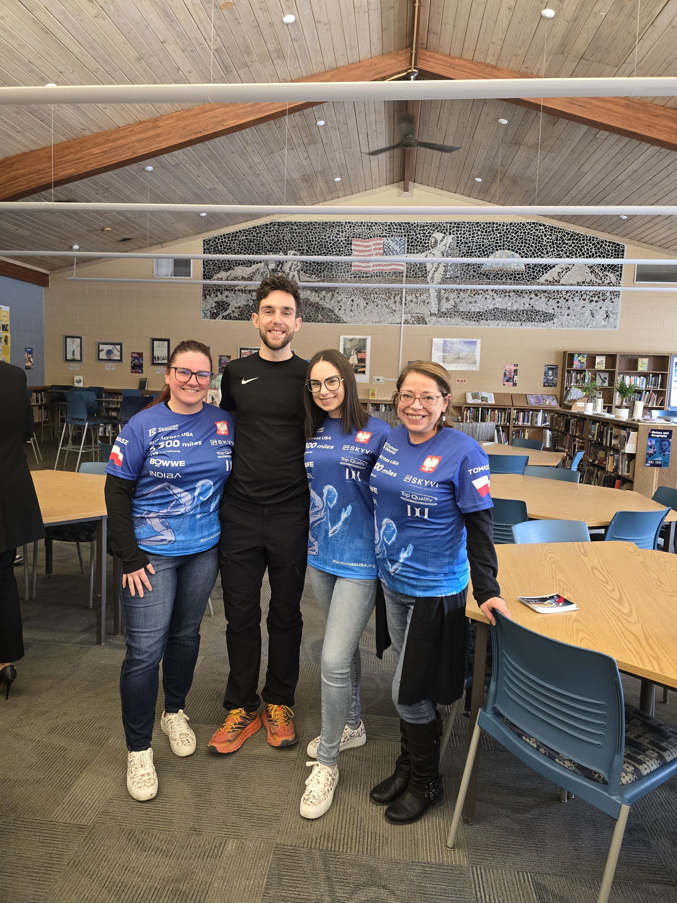 Tomasz Sobania ma na swoim koncie wiele imponujących biegów, o których opowiadał naszym uczniom. Wspominał m.in. bieg do Barcelony, którego zwieńczeniem było spotkanie i wspólny bieg po Barcelonie z Robertem Lewandowskim. Opowiadał również o biegu z Częstochowy do Rzymu oraz o spotkaniu z Papieżem. Jego największym osiągnięciem był bieg przez całe Stany Zjednoczone - z Nowego Jorku do Kalifornii. Wyzwanie to zajęło mu 139 dni, podczas których przebiegł 5250 km, co odpowiada 125 maratonom.