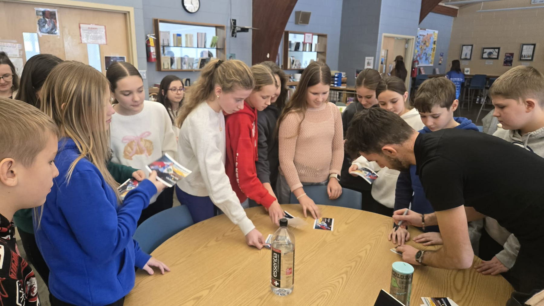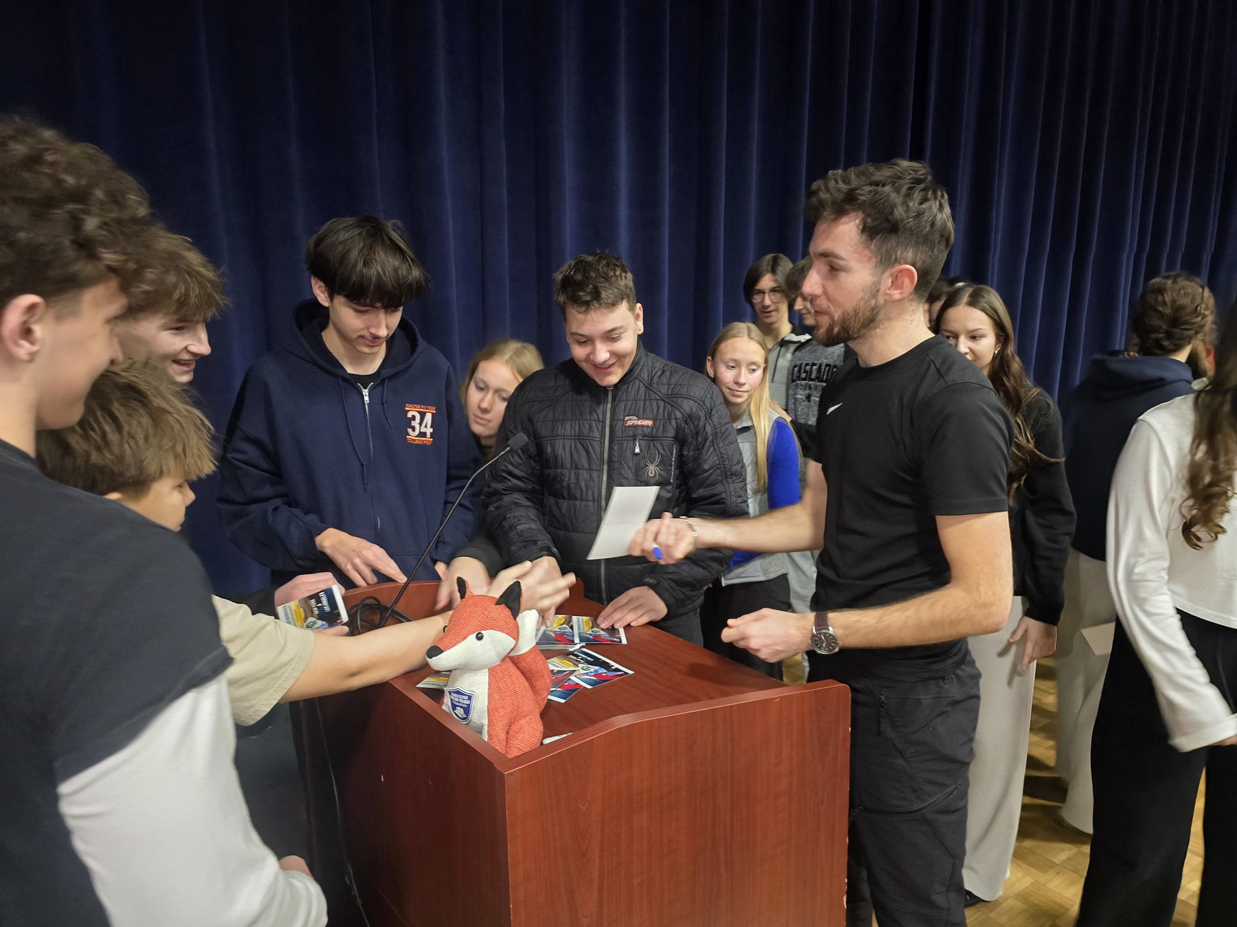 Na koniec odbyło się wspólne robienie zdjęć, podpisywanie fotografii z wizerunkiem gościa oraz symboliczny, wspólny bieg po szkolnych korytarzach.
