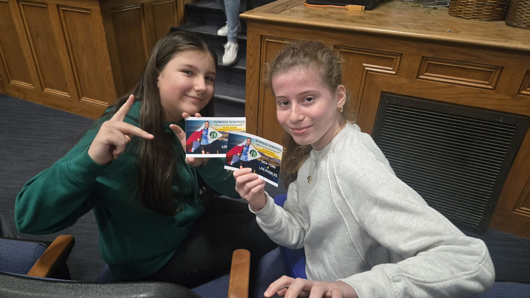Podczas spotkania obecna była także pani Grażyna Pikul z PSFCU - oddział Bridgeview, która ufundowała dla naszych uczniów dwie oryginalne koszulki Tomasza Sobani. Zostaną one przeznaczone jako nagrody w szkolnych konkursach.